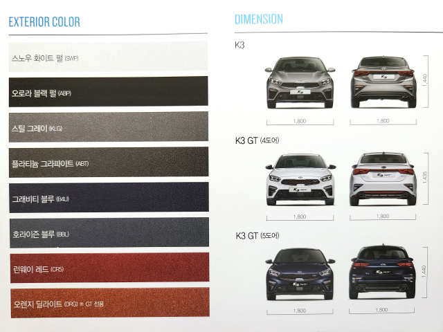 하지만 한국에서는 이 녀석을 K3의 GT 트림이 아닌 'K3 GT'라는 독립된 차명으로 분리하여 홍보하고 있습니다. K3의 캐치프레이즈인 'Driving Delight'를 살짝 비틀어 'Dynamic Delight'라는 전용 캐치프레이즈까지 달아줬죠.