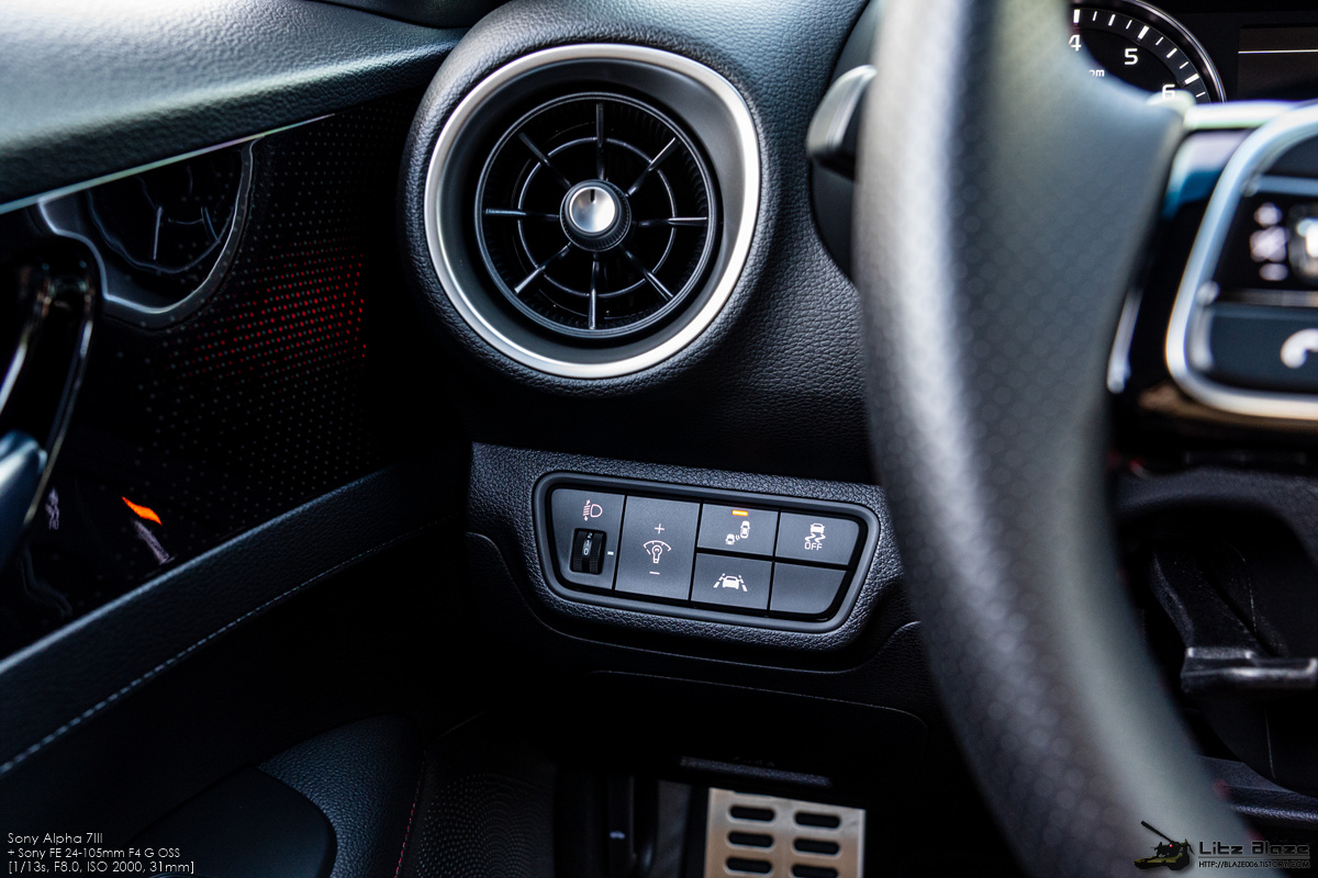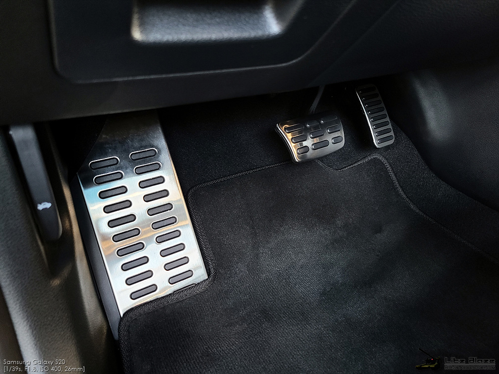 브레이크 페달, 액셀 페달, 풋레스트는 메탈 플레이트로 장식되어 있는데 이는 GT 전용 사양입니다. 액셀 페달은 통상적인 서스펜디드 타입인데 오르간 타입이 아니라 불만이라는 사람도 있지만 개인적으로는 서스펜디드 페달도 어울린다고 생각하기 때문에 딱히 유감은 없습니다. 서스펜디드 페달을 오래 사용하다 보니 오르간 페달의 조작감이 되려 더 어색하기도 하고요.