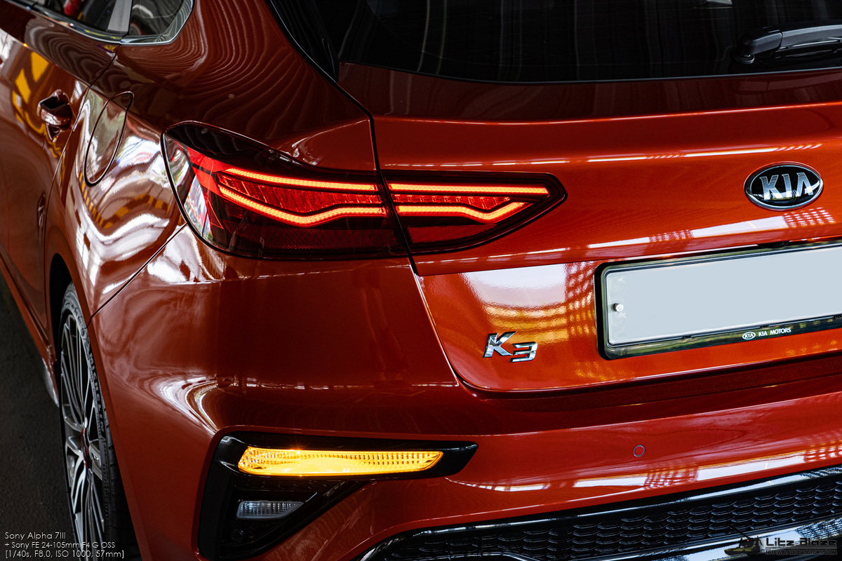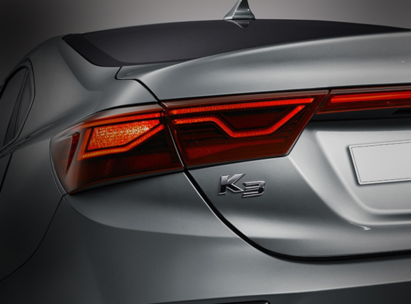테일램프는 기본형 K3와 마찬가지로 방향지시등과 후진등이 브레이크등과 분리되어 있습니다. 일반적인 차량이라면 리플렉터가 들어가는 자리에 방향지시등이 들어갔는데 리플렉터가 브레이크등 바로 아래에 자리 잡은 것을 보면 디자인을 위해 의도적으로 가니쉬로 분리한 구성입니다. 브레이크등과 방향지시등 사이의 범퍼 패널에는 후측방 감지용 레이더가 내장되어 있습니다.