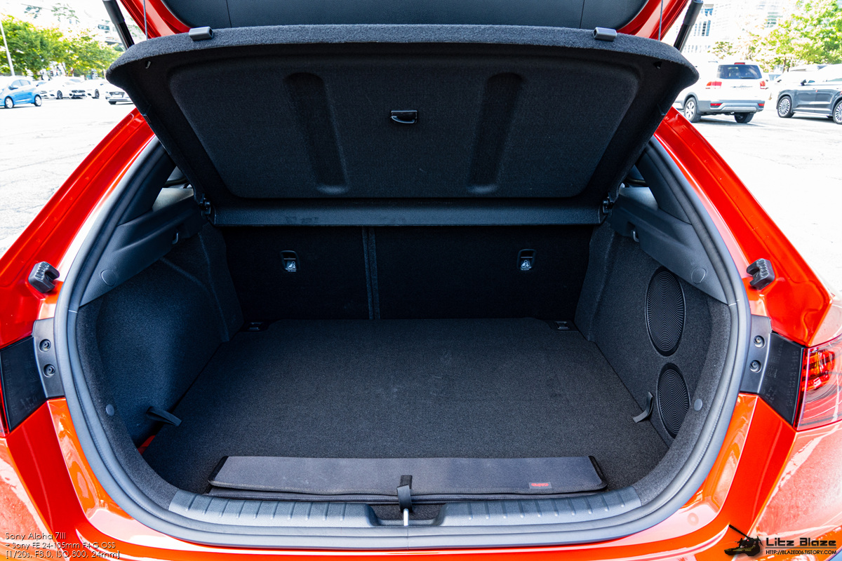 테일게이트 차량의 특권으로 위와 같이 시트 폴딩을 하지 않아도 세단으로는 따라 하기 힘든 화물 적재가 가능합니다. 이 때문에 수치 상으로는 세단보다 부족한 트렁크 용량임에도 트렁크 공간을 훨씬 더 효율적으로 사용할 수 있지요. 물론 위와 같이 리어 글라스를 가릴 정도로 화물을 적재한다면 후방 시야 확보 문제가 생기고 작은 화물을 이 정도 높이까지 쌓는다면 화물이 2열 헤드룸을 타고 넘어올 가능성도 있기 때문에 지양하는 것이 좋습니다.