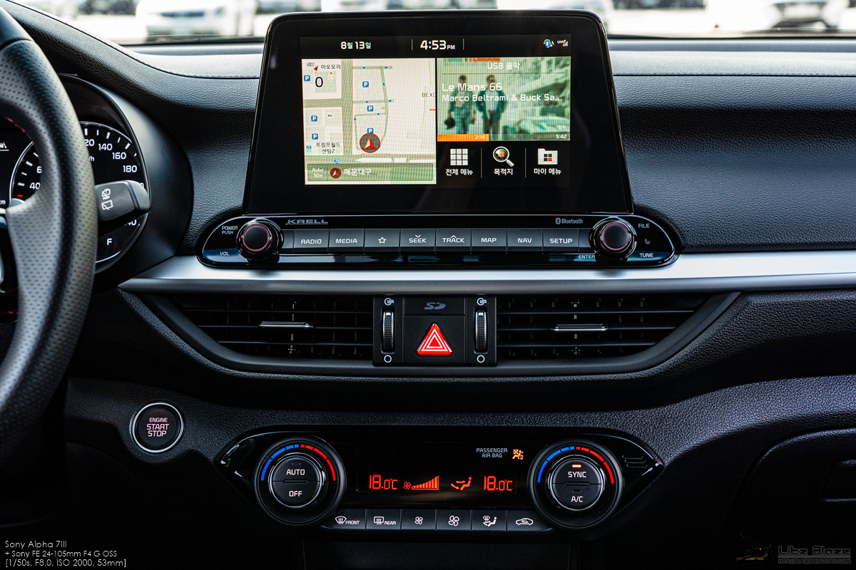 등장 당시에는 최첨단 이미지를 주기에 충분한 구성이었지만 K3 GT가 출시된 지 2년이 지난 현재의 기준으로는 10인치 디스플레이에 밀려 한물 간 느낌입니다. 저야 뭐 이전 차에는 인포테인먼트 시스템 자체가 없는 차를 탔던지라 이 정도만 해도 감지덕지입니다만... BD의 멕시코 사양과 중국 사양은 지금도 10.25인치 디스플레이가 적용되는 것을 보면 한국 사양도 페이스리프트 때는 10.25인치로 디스플레이가 커질 것으로 추측됩니다.