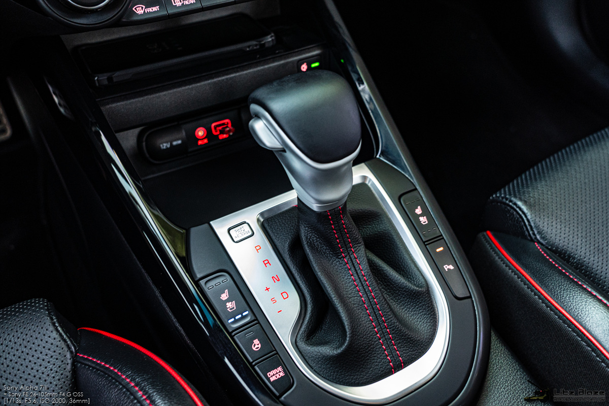 기어 레버는 K3와 동일한 디자인을 사용합니다. GT 전용 사양으로 기어 부츠에 레드 스티치가 들어가긴 했는데 이왕이면 기어 노브에 GT 엠블럼 하나 정도는 박아주는 게 어땠을까 싶군요. 덤으로 K3의 수동변속기는 한국 내수 사양에서는 K3 GT 4도어만 선택 가능한 옵션이라 존재 자체가 GT 전용이긴 합니다.